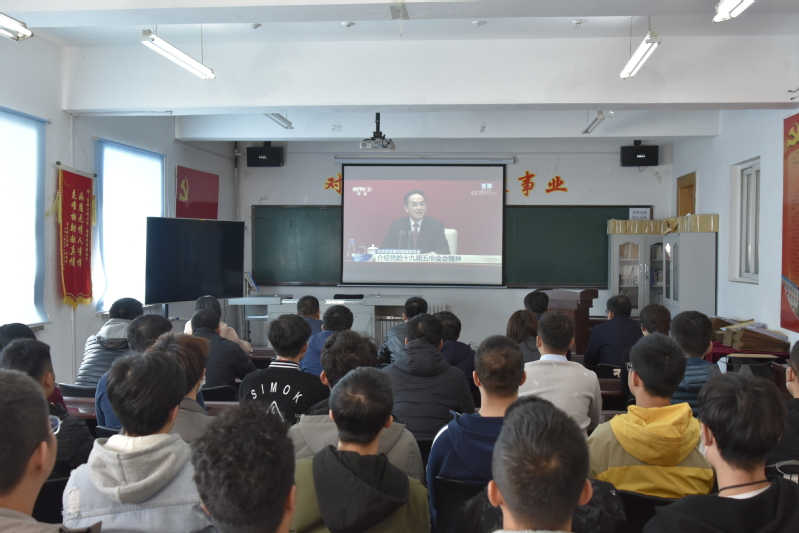 本网讯(通讯员 王潇猇)10月30日上午10时,中共中央就党的十九届五中全会精神举行新闻发布会,学院党委成员,全体党支部书记,各系、中心主任副主任,全体政工干部和各年级学生代表在1462会议室集中观看了现场直播,其他无课的师生通过网络进行学习。