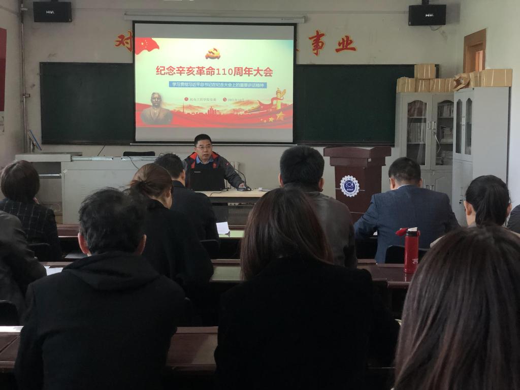 本网讯(通讯员 周子明)10月20日,太阳成tyc7111cc集团组织全体教师进行政治理论学习,认真学习贯彻习近平总书记在纪念辛亥革命110周年大会上的重要讲话精神,学习会由党委书记李奇涵主持。