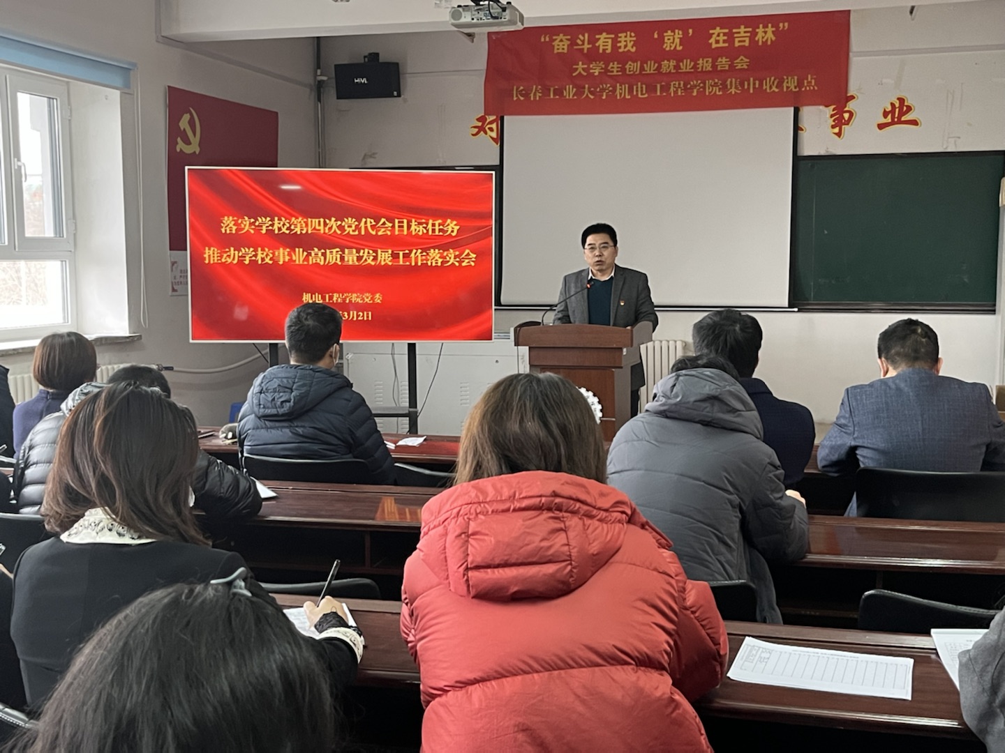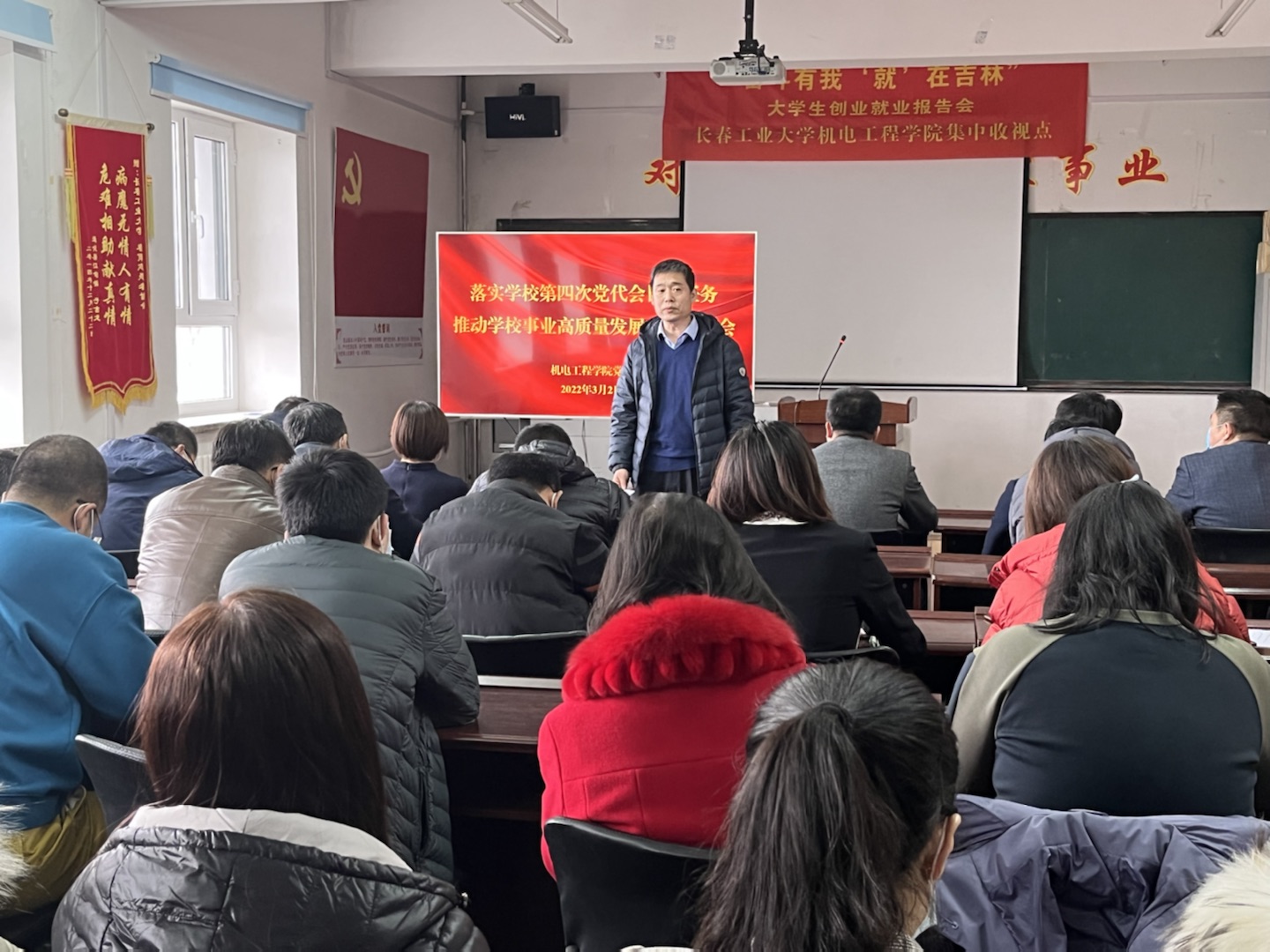院长岳晓峰向全体教师介绍了学校领导结合分管工作所作的专题报告,并结合学院实际情况从人才培养、学科建设、学生就业,教师队伍等方面进行了工作部署。党委书记李奇涵重点传达了党委书记孙长智讲话精神和校长张明耀所作报告中的主要工作举措,并从党建工作、学科专业、师德师风、三全育人、特色凝练、校庆工作等方面进行了工作展望和部署。