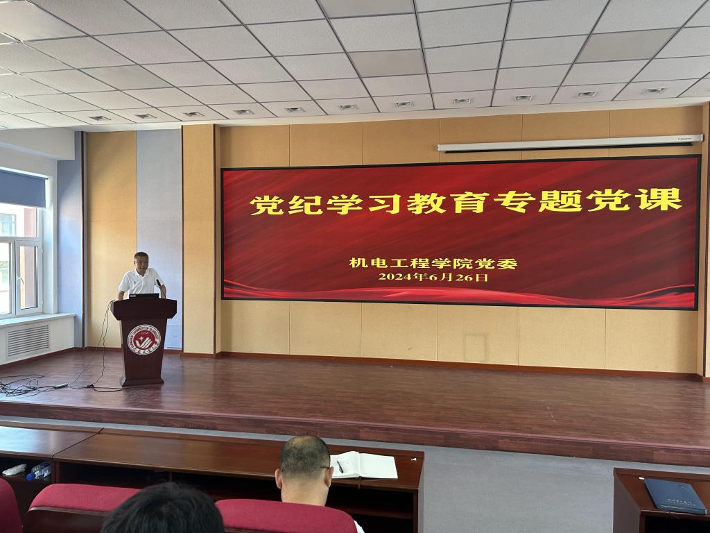 (本网讯 通讯员周子明)6月26日,学院党委书记张利军在综合三为全院教师讲授了题为《学党纪 强定力 争做“四有”好老师》的党纪学习教育专题党课。