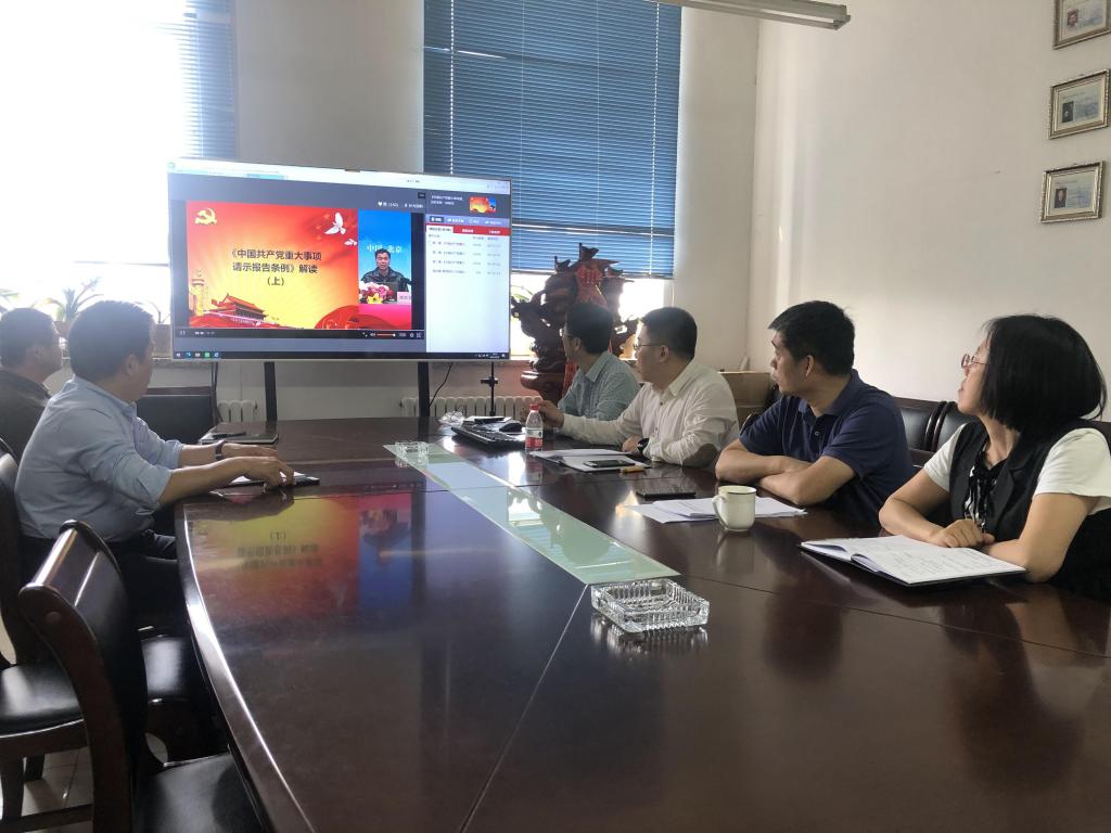 会上,中心组成员共同学习了《中国共产党重大事项报告请示条例》(以下简称《条例》)颁布实施的意义、主要内容及贯彻落实《条例》的主要方法。