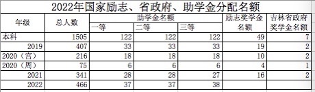 1.吉林省政府奖学金的评选对象为我院二年级以上(含二年级)的品学兼优的全日制在籍本科学生;国家励志奖学金的评选对象为我院二年级以上(含二年级)的家庭经济困难且品学兼优的全日制在籍本科学生;国家助学金的评选对象为我院家庭经济困难的全日制在籍本科学生。