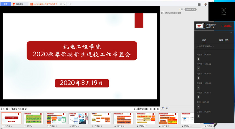 会后,学院统一制作了《太阳成tyc7111cc集团2020秋季学期学生返校工作布置会》的PPT和《太阳成tyc7111cc集团学生秋季返校行程统计表》,各年级辅导员也通过网络召开年级会议,向全体学生传达返校工作要求,要求同学们要做好充分的准备工作,在做好个人防护的前提下按时返校,迎接新学期的到来。