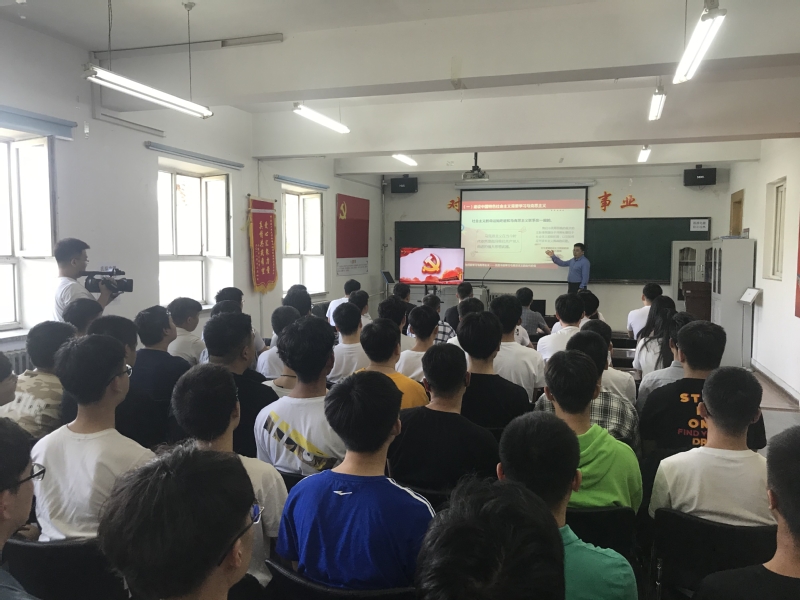 本网讯(通讯员王潇猇)为庆祝新中国成立70周年,全面推进我院“不忘初心 牢记使命”主题教育活动的顺利开展,9月29日,学院党委书记李奇涵为全体学生党员上了题为《做马克思主义坚定的信仰者》主题党课,并接受了吉林电视台采访。