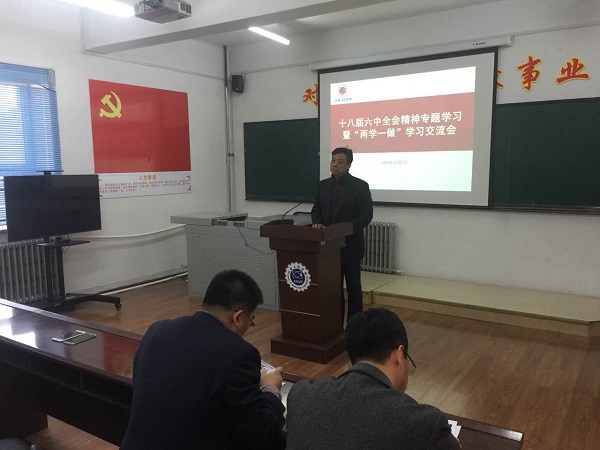 新闻网讯(通讯员杨楠)12月7日,太阳成tyc7111cc集团党委十八届六中全会精神专题学习暨“两学一做”学习交流会在学院会议室举行。学院党政领导、各系支部书记、主任及全体党员参加了大会。大会由学院党委副书记胡刃锋主持。