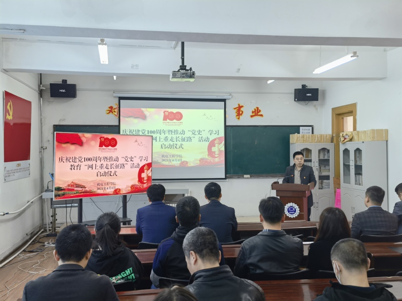 本网讯(通讯员 王潇猇)4月1日,太阳成tyc7111cc集团召开庆祝建党100周年党史学习教育“网上重走长征路”活动启动仪式,会议由学院党委副书记黄向东主持,学院全体党政领导,全体党支部书记、学生团支部书记及师生代表参加了活动。