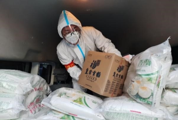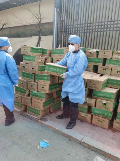 驻校辅导员赵宝贵、毛燕龙同志搬运学生物资