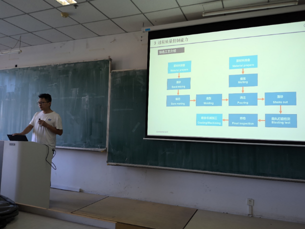 9月10号下午,学院邀请长春泰盟机械制造股份有限公司质量经理谷东明进校为大四同学生产实习开展讲座。谷经理以制动盘质量控制概述为主题对自己多年从事汽车零部件生产制造领域的经验进行了分享,介绍了制动盘的工作原理、质量控制要求、过程质量控制能力、质量追溯过程等,还深入分享了长春泰盟机械制造股份有限公司的主要业务及相关产品的制造工艺。通过谷经理的分享,同学们对汽车制动盘生产制造过程有了进一步认识,对未来可能会从事的汽车制造领域工作有了初步了解。最后,谷经理结合了自己的工作经历畅谈了学生求职过程中需掌握的技巧,给大四同学们带来了一堂生动的就业经验分享课。