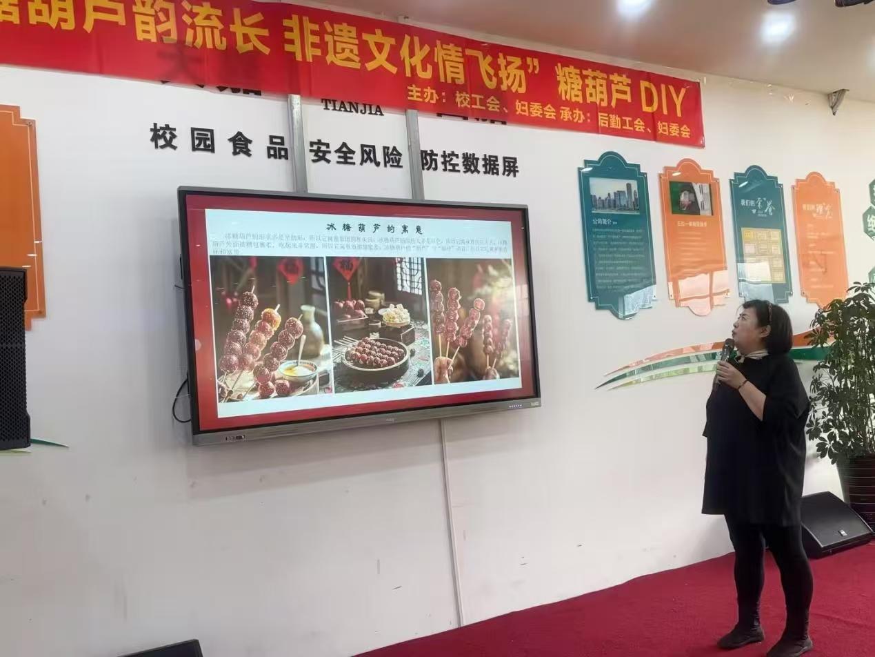 为了确保活动的顺利进行,后勤部门早早准备好了丰富的材料:山楂、青提、草莓、橘子等各式水果,种类繁多,色彩缤纷。确保每一个环节都井然有序。师生们的默契配合,为活动的顺利开展奠定了坚实的基础。活动开始前,老师详细讲解了糖葫芦的起源和历史。