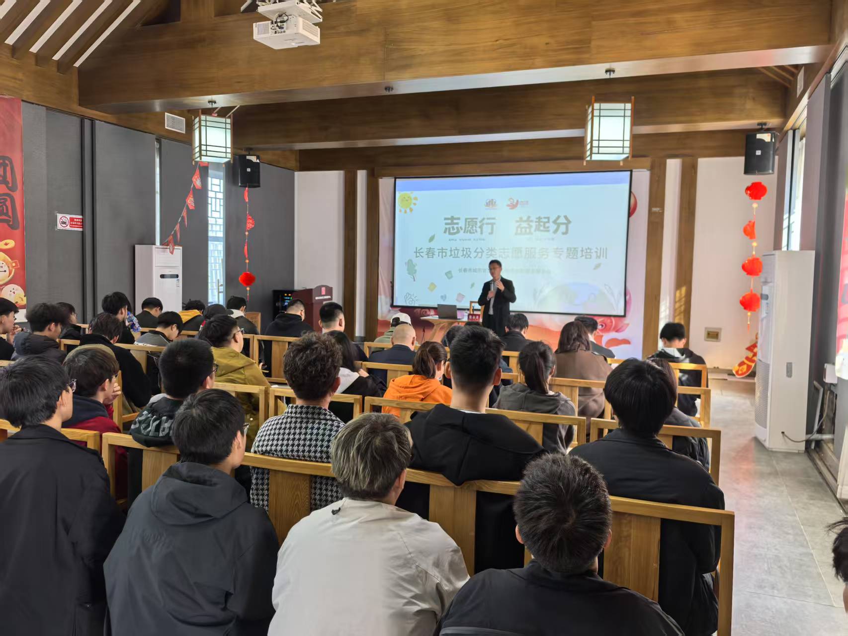 活动当天,志愿者们首先聆听了长春市垃圾分类专题讲座,详细了解了可回收物、有害垃圾、厨余垃圾和其他垃圾的分类标准及本地政策法规。随后,培训还特别安排了垃圾分类志愿服务技巧的讲解,包括如何与不同背景的公众有效沟通,以及如何策划和组织垃圾分类宣传活动。这些内容不仅增强了志愿者的专业知识,也提升了他们的实践操作能力。