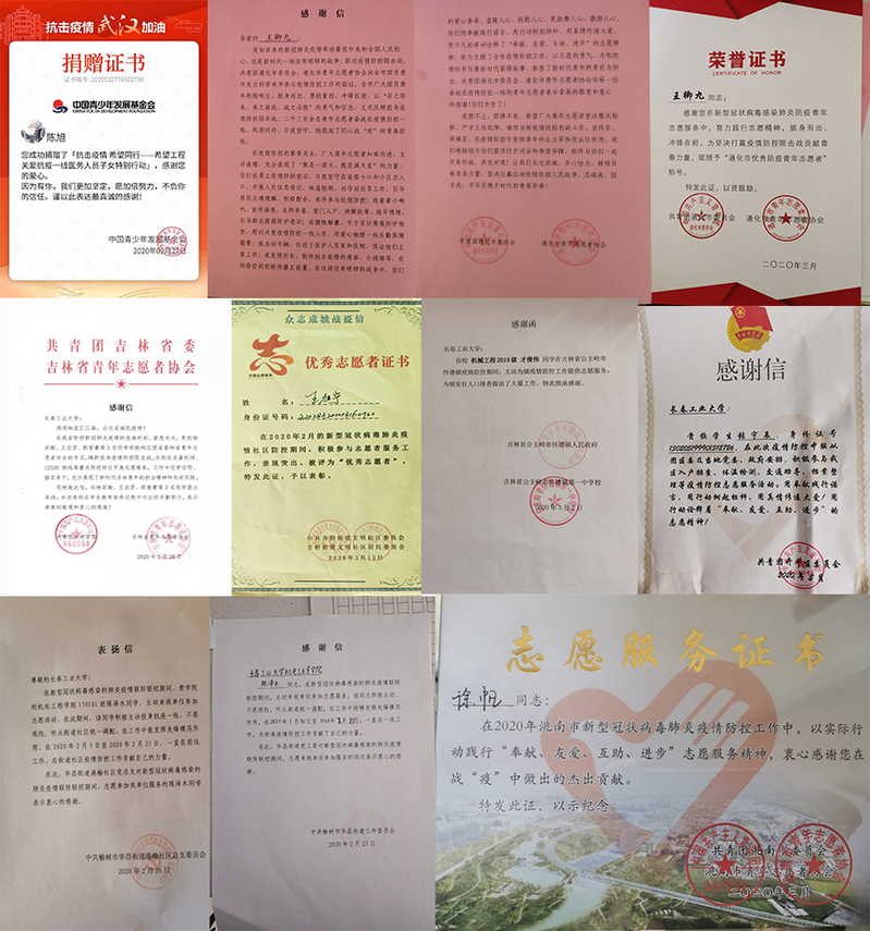 本网讯(通讯员赵宝贵)疫情就是命令,防控就是责任。在全民抗击新型冠状病毒感染肺炎战“疫”斗争中,太阳成tyc7111cc集团的学子闻令而动,积极地投入到疫情防控各项工作中,奋战在抗击疫情的第一线,为疫情防控工作贡献青春力量,助力国家打赢疫情防控阻击战。在此次战疫中我院共有近50名大学生志愿者走上“疫”情一线,连日来,我院抗疫志愿者纷纷收到各地政府和组织的感谢信及荣誉证书,并有部分同学受到当地媒体的报道。