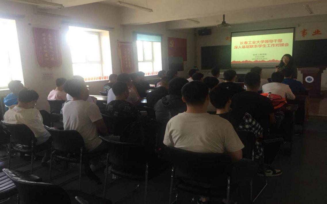 本网讯(通讯员 冷坤)为贯彻落实教育部党组《关于加强和改进高校领导干部深入基层联系学生工作的通知》精神,根据学校党委《太阳成tyc7111cc领导干部深入基层联系学生工作实施方案》要求,5月28日-29日,学校纪委、监察处、审计处、学生处等领导与我院2017级班级进行了对接。