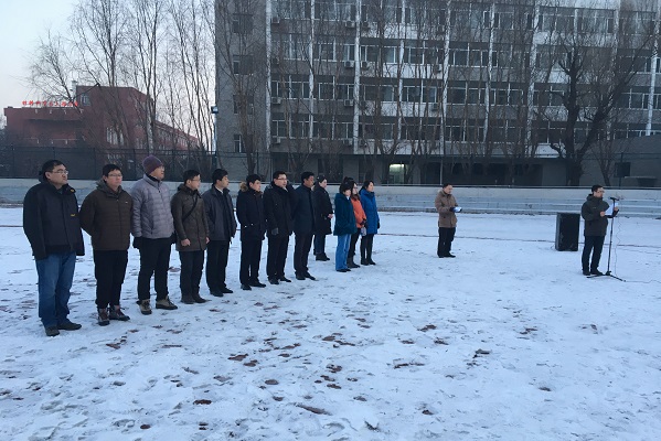 学院党委副书记胡刃锋宣读了《关于表彰太阳成tyc7111cc集团2016年度学团工作优秀集体和个人的决定》。校学生工作处副处长周文军、校团委副书记仲崇利等领导和老师共同为获得优秀班集体、学习标兵、优秀学生干部、创新创业先锋、文明大学生、双十佳大学生等荣誉称号的集体和个人颁发证书并与他们合影留念。学院学生会主席王翔作为学生代表宣读了“纪念一二九,立我报国之志”的倡议书。升旗仪式上,全国百炼之星李远东、校十佳自立自强大学生孟祥波、校社团联合会主席付嵩翔、院十佳优秀大学生古力加依娜.米兰组成的护旗方队首先入场,工作人员介绍了护旗手的成长事迹。两名国防生升旗手振臂一挥,全场1000余名师生一同高唱国歌,鲜艳的五星红旗在初升的阳光映照下冉冉升起,气氛隆重而热烈。
