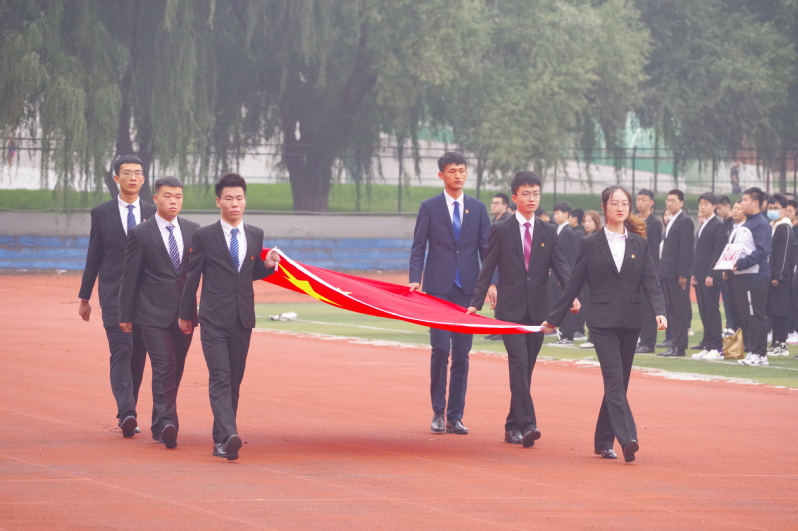 早晨6:30分,升国旗仪式正式开始。由6名优秀学生代表组成的国旗护卫队迈着整齐的步伐,护送国旗入场;伴随着3名学院国旗班同学坚实有力的步伐和全体师生庄重嘹亮的国歌声,鲜艳的五星红旗在晨风中冉冉升起。