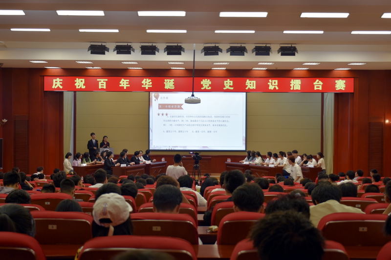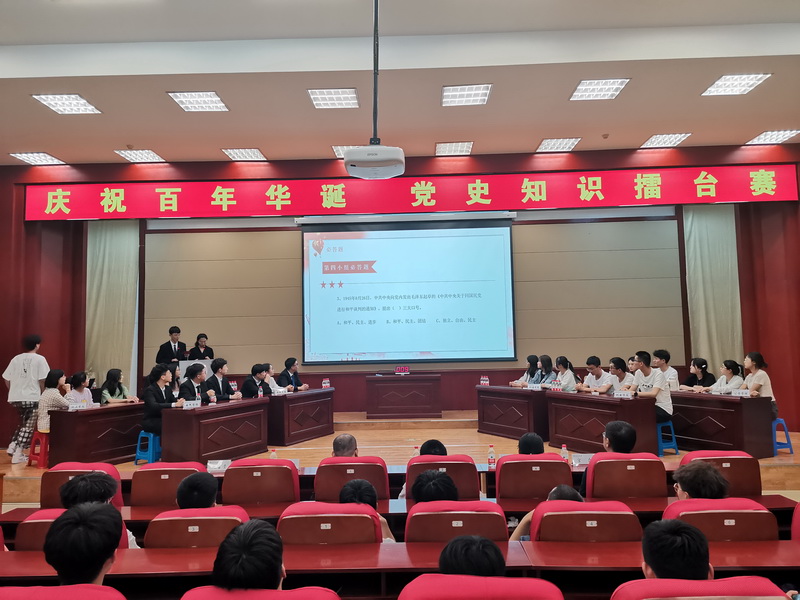 本网讯(通讯员 田寿杭)为深入学习贯彻习近平总书记在党史学习教育动员大会上的讲话精神,在党的100周年华诞之际,热情讴歌中国共产党领导中国革命和建设取得的伟大成就。6月9日,我院于南湖校区学术报告厅举办了“庆祝百年华诞”党史知识擂台赛。学生工作处副处长肖永辉、校团委宣传部部长范婷婷、学院党委副书记黄向东及学院部分辅导员观看了本次比赛。