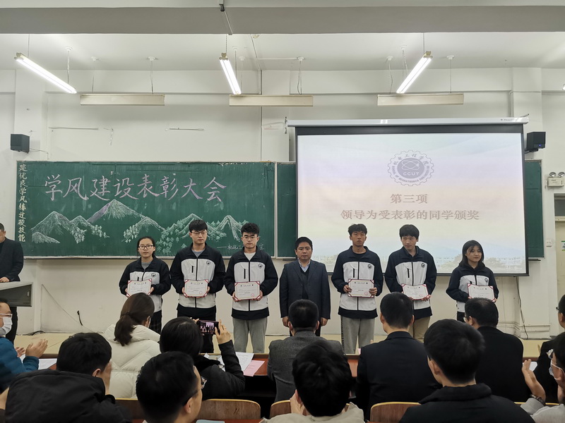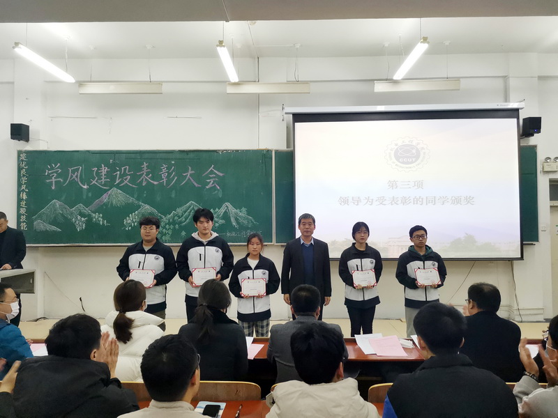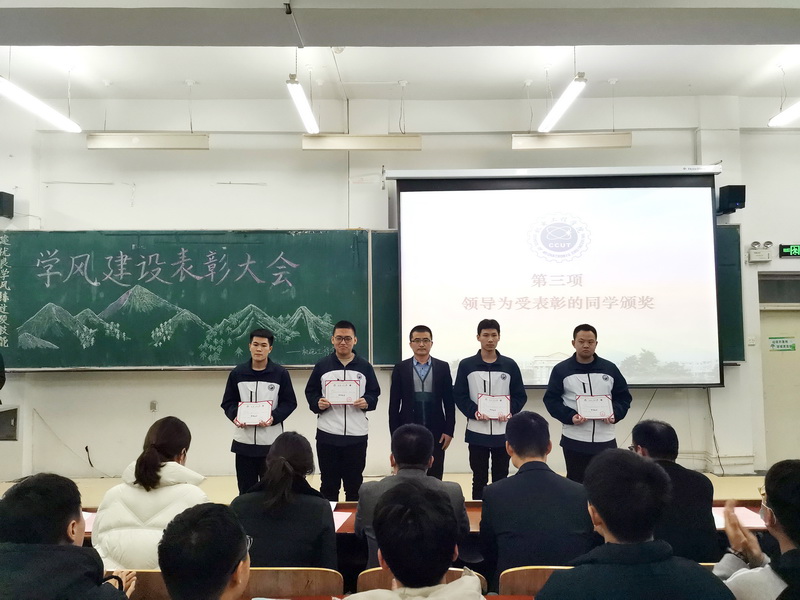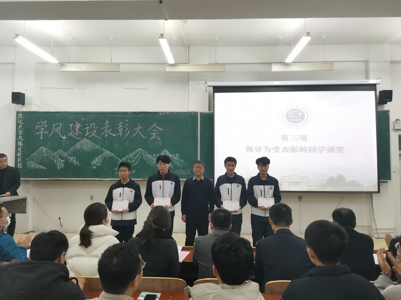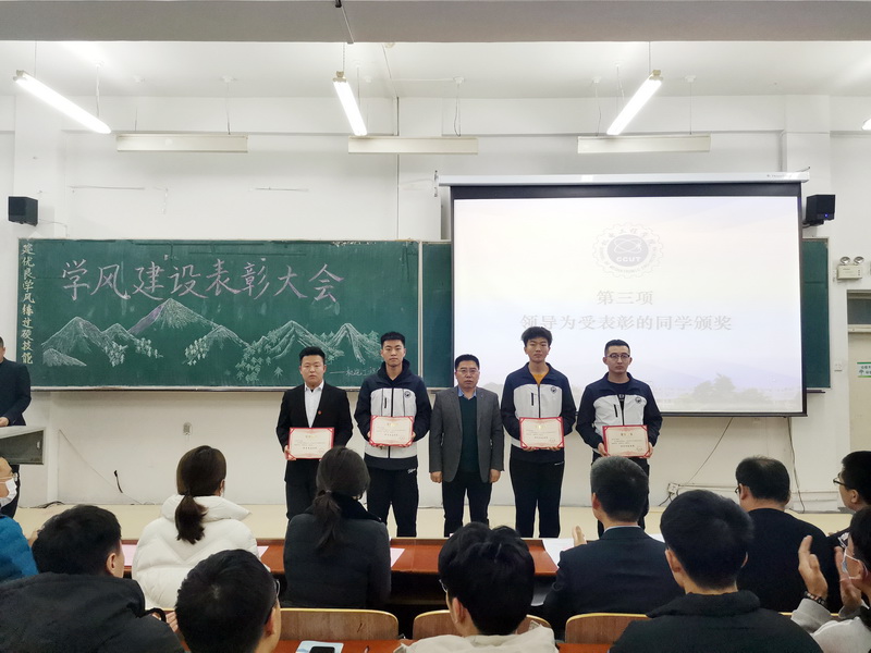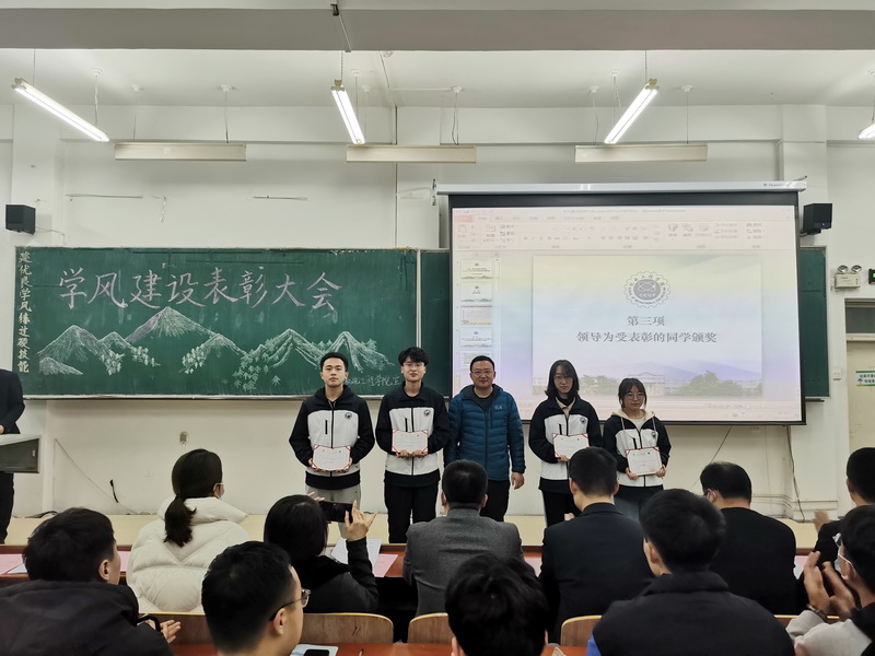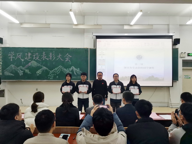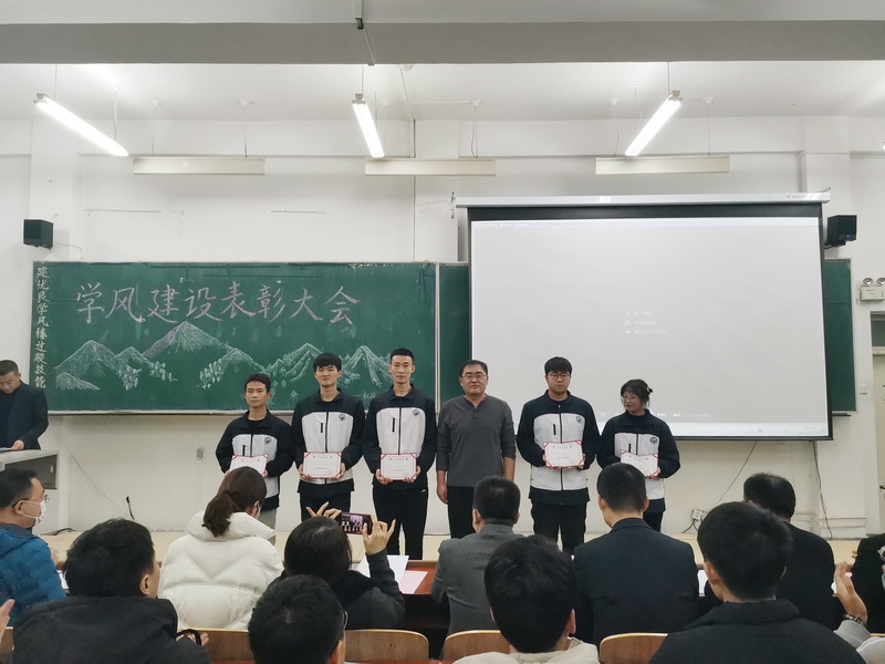 大会在嘹亮的国歌声中拉开序幕。院党委副书记黄向东宣读表彰决定,经过学院评定,授予190101班等5个班级学风建设“优良学风班”荣誉称号;授予1栋123等13个寝室学风建设“优良寝室”称号;授予190102班王瑶迪等12只学习小组 “优秀学习小组”称号;授予180106班李兰珂等31名同学“学习标兵”荣誉称号,授予190101班王靖然等17名同学“科研标兵”荣誉称号,授予190101班朱宏达等24名同学学风建设“突出贡献个人”荣誉称号;授予190103班谭鸿强等26名同学学风建设“学习进步奖”;授予180110班张鹤钰等10人“文体活动突出贡献奖”。学院党委书记李奇涵、院长岳晓峰、副书记黄向东及各系主任分别为获奖班级及个人颁奖。