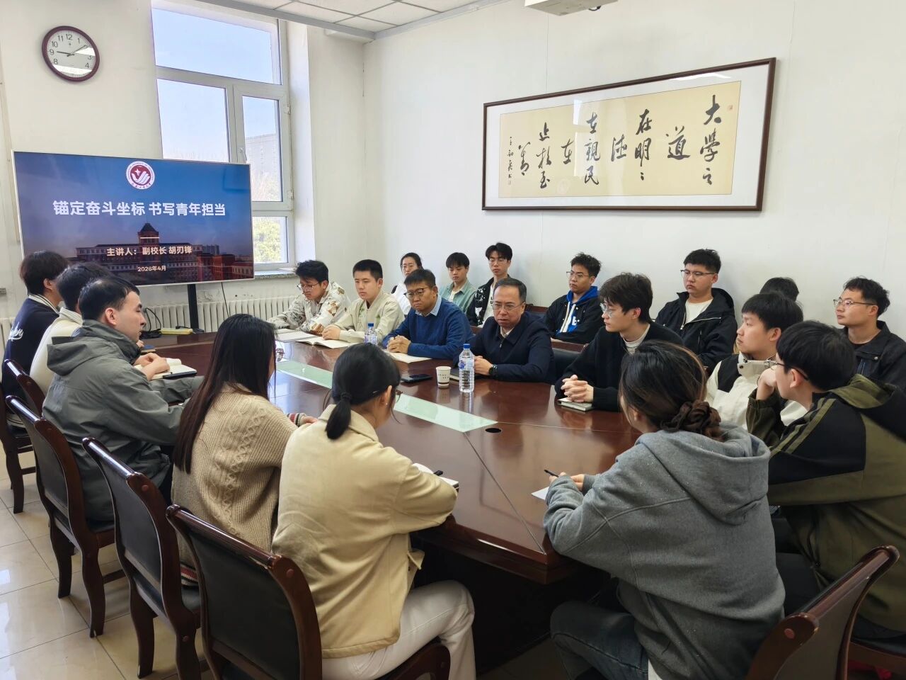 围绕未来发展,胡刃锋副校长提出殷切期望。他强调,青年担当需以扎实专业能力为根基,要深耕专业课学习,吃透核心知识,主动参与产教融合实践,在真实产业场景中锤炼工程本领。他寄语同学们,既要树立“立足地方、服务全国”的远大目标,也要脚踏实地做好当下每一次实验、每一项设计,以专业素养筑牢成长基石。